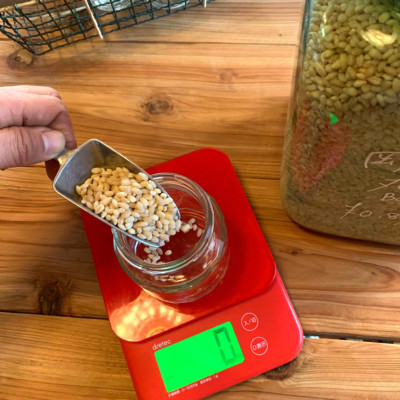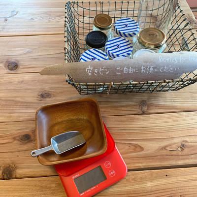 個包装されている商品を買うのに比べ 自分で容器を持参して量って。。。